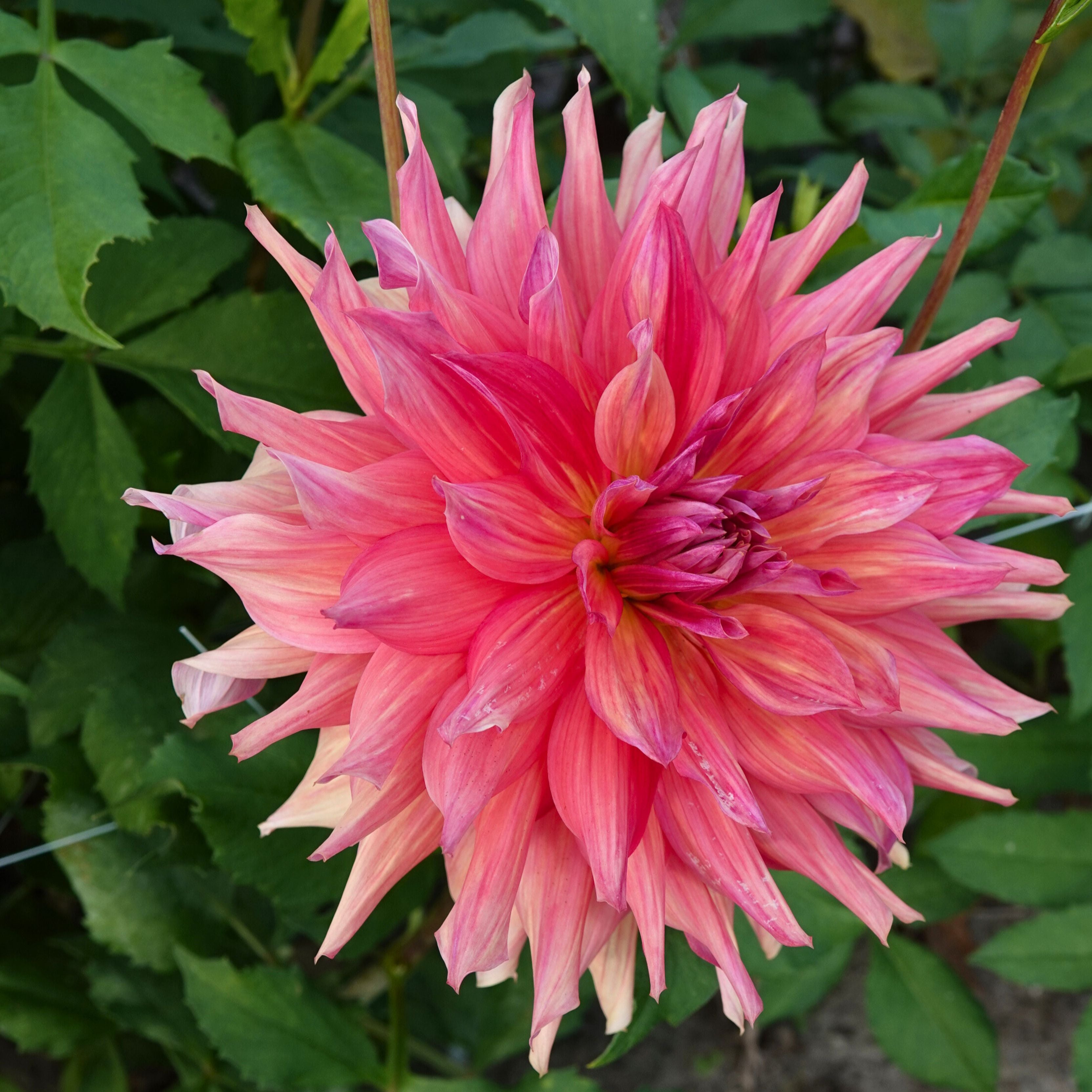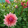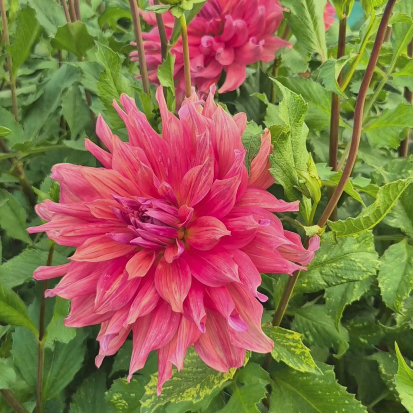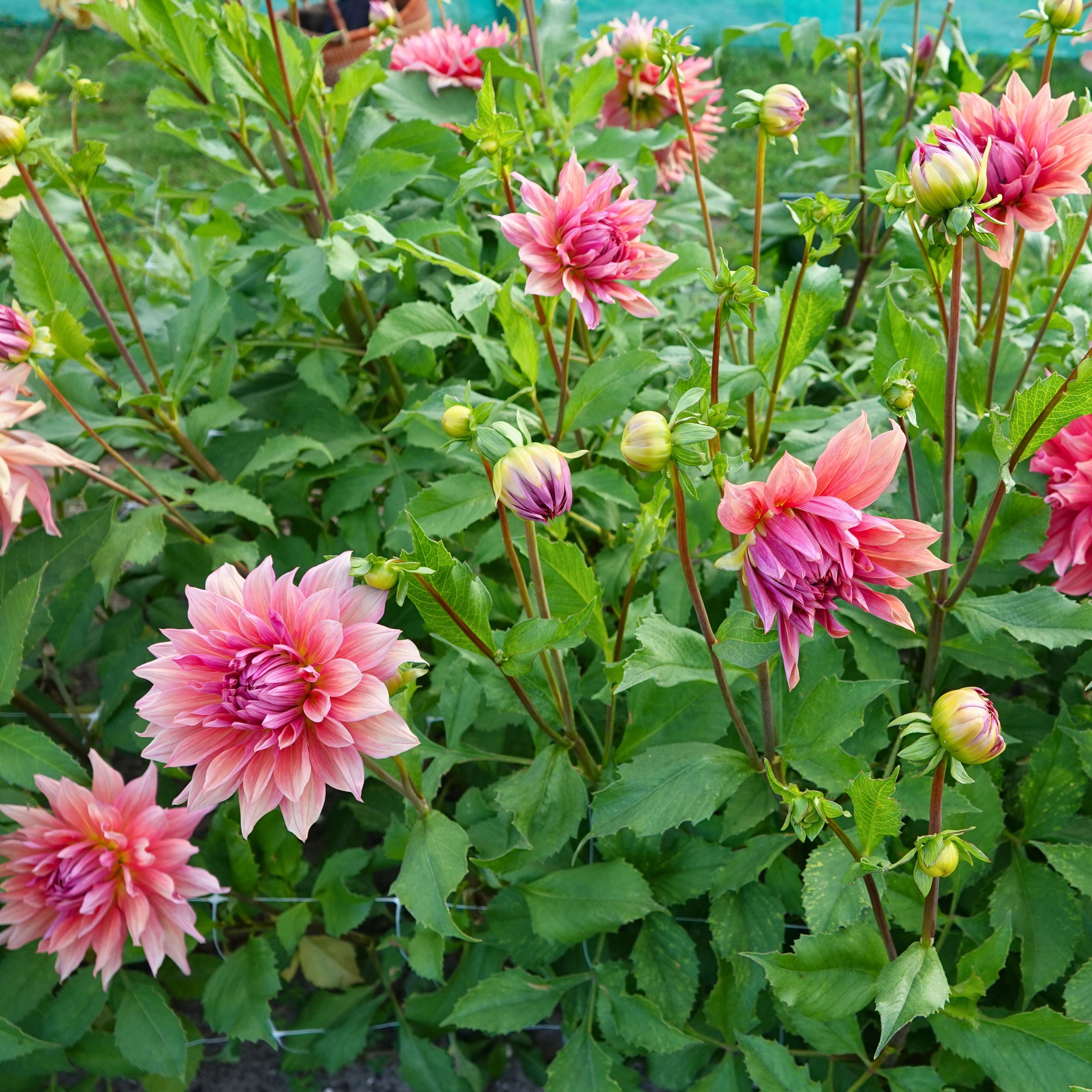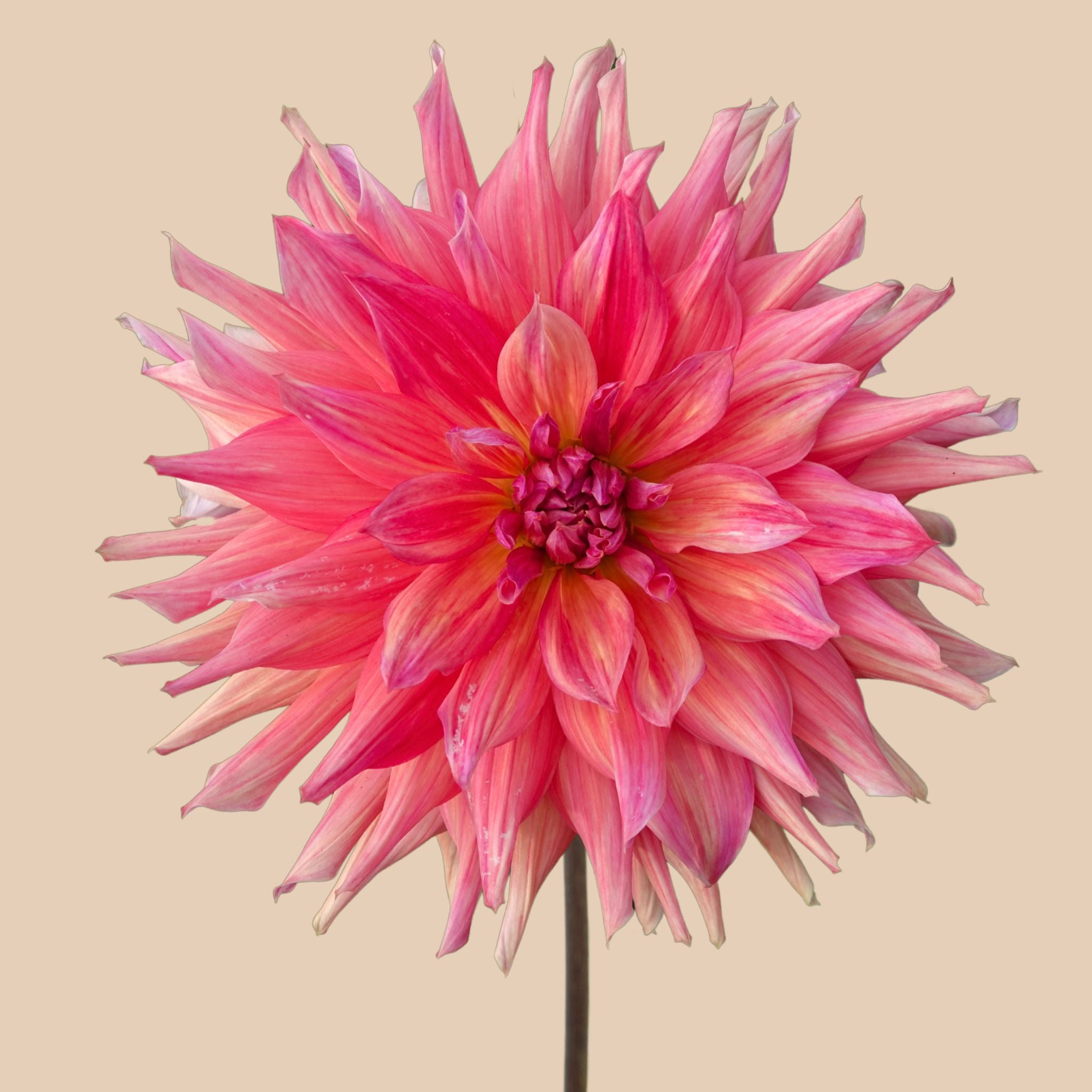 Die gedrehten Blütenblätter sorgen für eine besondere Blütenform, die mit nichts zu vergleichen ist. In Kombination mit dem sanften Farbverlauf von Pfirsichrosa zu Korallen-Himbeerrot und den langen, festen Blütenstielen ist dies eine der auffälligsten Teller-Dahlien. Perfekt für alle, die Drama im Beet und Pracht in Blumensträußen suchen, aber auch eine Blume, die den ganzen Sommer über überrascht.