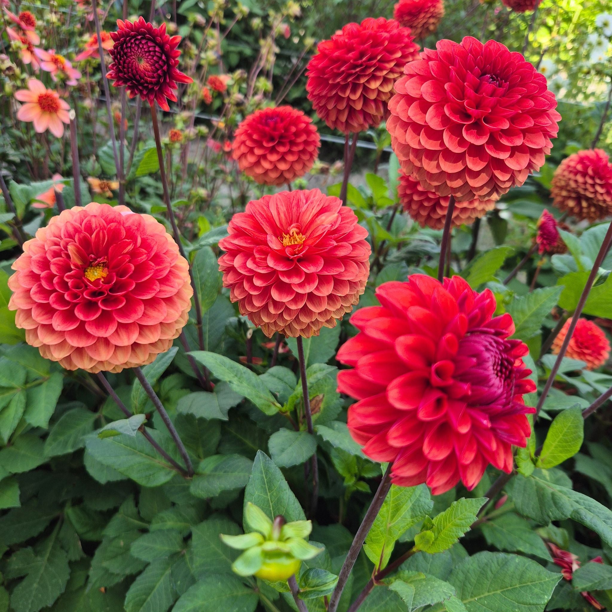 Diese Dahlie blüht reichlich vom Sommer bis zum ersten Frost. Die kompakten, gefüllten Blüten bleiben dank ihrer kugelförmigen Struktur schön rund und fest. Schneide regelmäßig Blumen für die Vase ab. So bekommst du immer wieder neue Blüten und Ihr Garten bleibt eine unerschöpfliche Quelle der Farbenpracht.