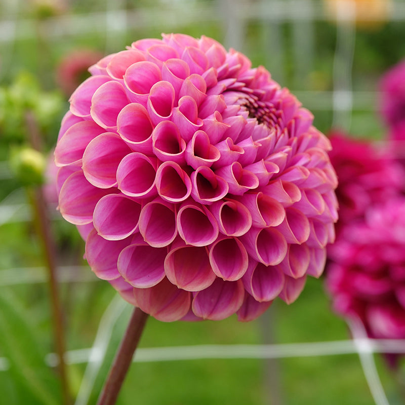 Die Dahlie ‘Isabel’ blüht den ganzen Sommer über bis zum ersten Frost und bildet Blüten mit einem Durchmesser von etwa 10 cm. Die Pflanzen werden etwa 120 cm hoch und tragen ihre Blüten auf langen, geraden und festen Stielen. Das macht sie nicht nur zu einem auffälligen Blickfang im Beet, sondern auch zu einer perfekten Schnittblume. Je öfter du schneidest, desto mehr neue Knospen bilden sich.