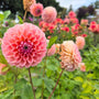 Durch ihre zarten Pfirsichfarbtöne lässt sie sich endlos mit anderen Farbtönen kombinieren. Die kleinen, perfekt runden Blüten wirken in Kombination mit anderen Dahlienblüten, die oft größer sind, luftig und verspielt.