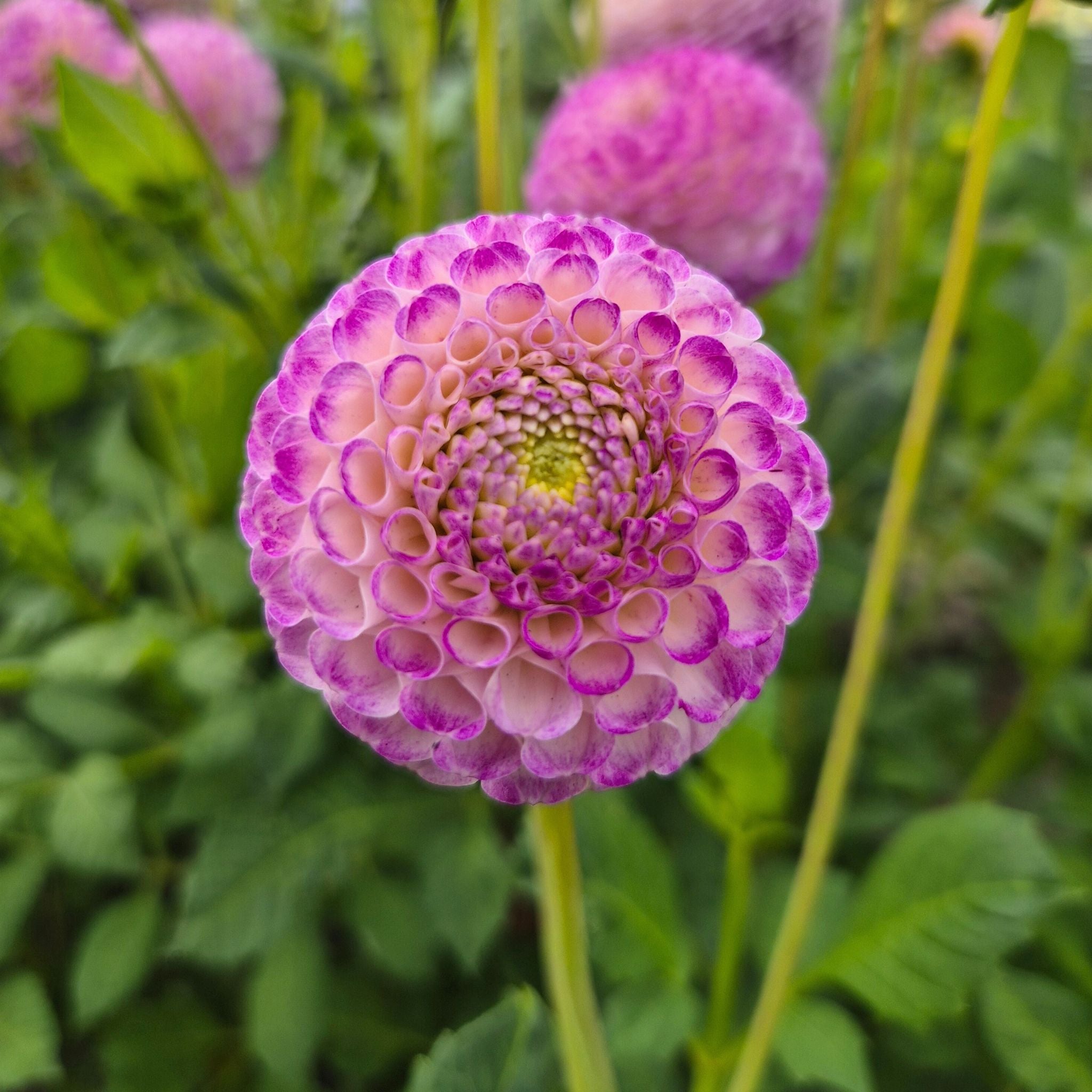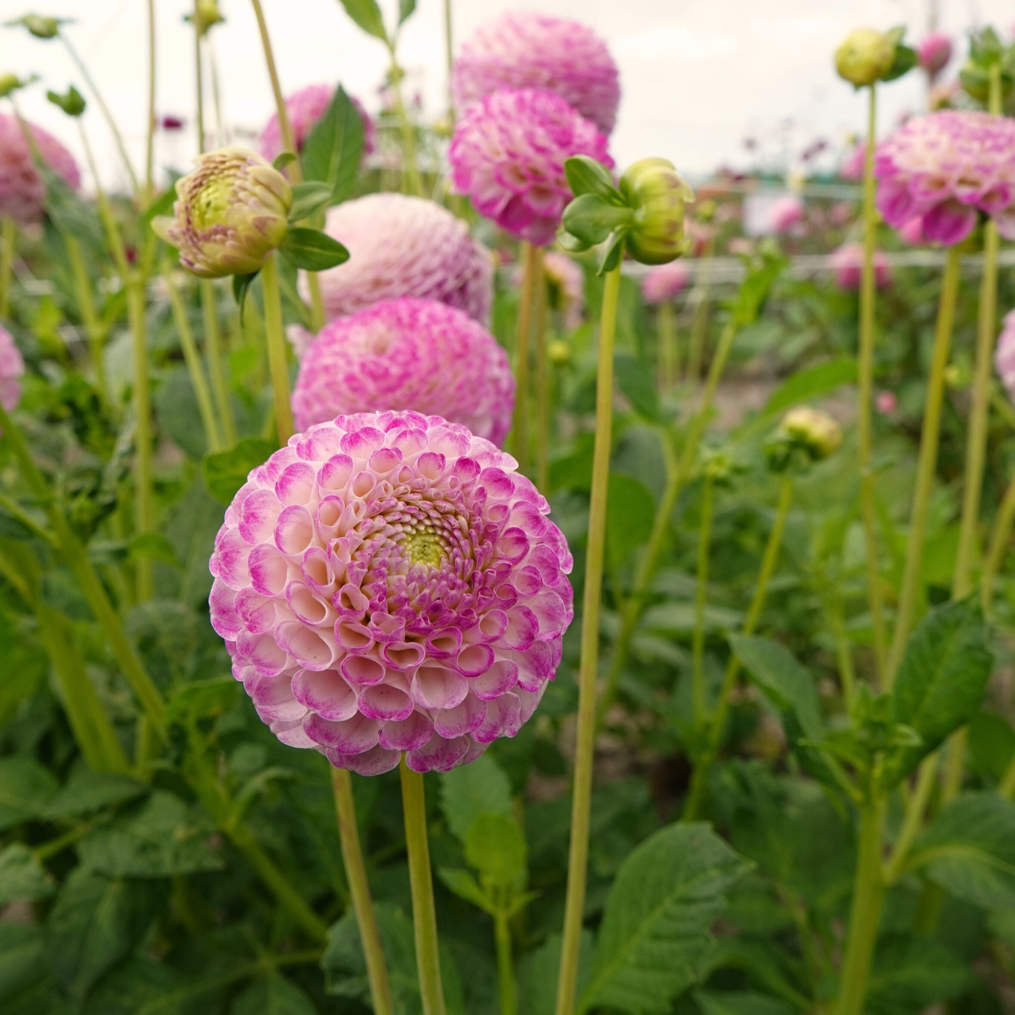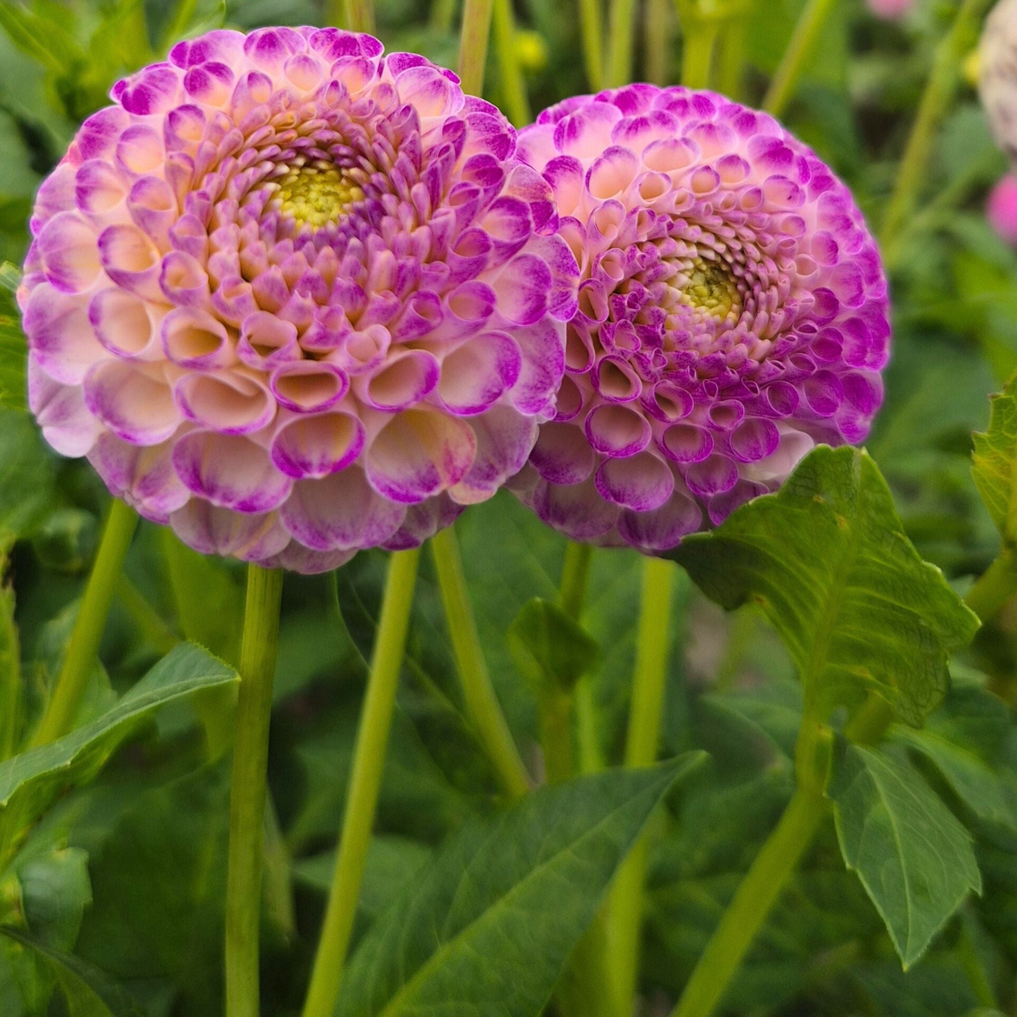 Die Dahlie ‘Ping Pong’ ist neu in unserem Sortiment und ich habe sie hinzugefügt, weil sie mit ihren perfekt runden Pomponblüten von etwa 5 cm Ihrer Dahlienkombination einen verspielten, luftigen Effekt verleiht. Die Blütenblätter sind cremefarben kombiniert mit Cerise-Rosa, der Farbe, die du auch in deinem sommerlichen Obstsalat mit saftigen Kirschen wiederfinden.