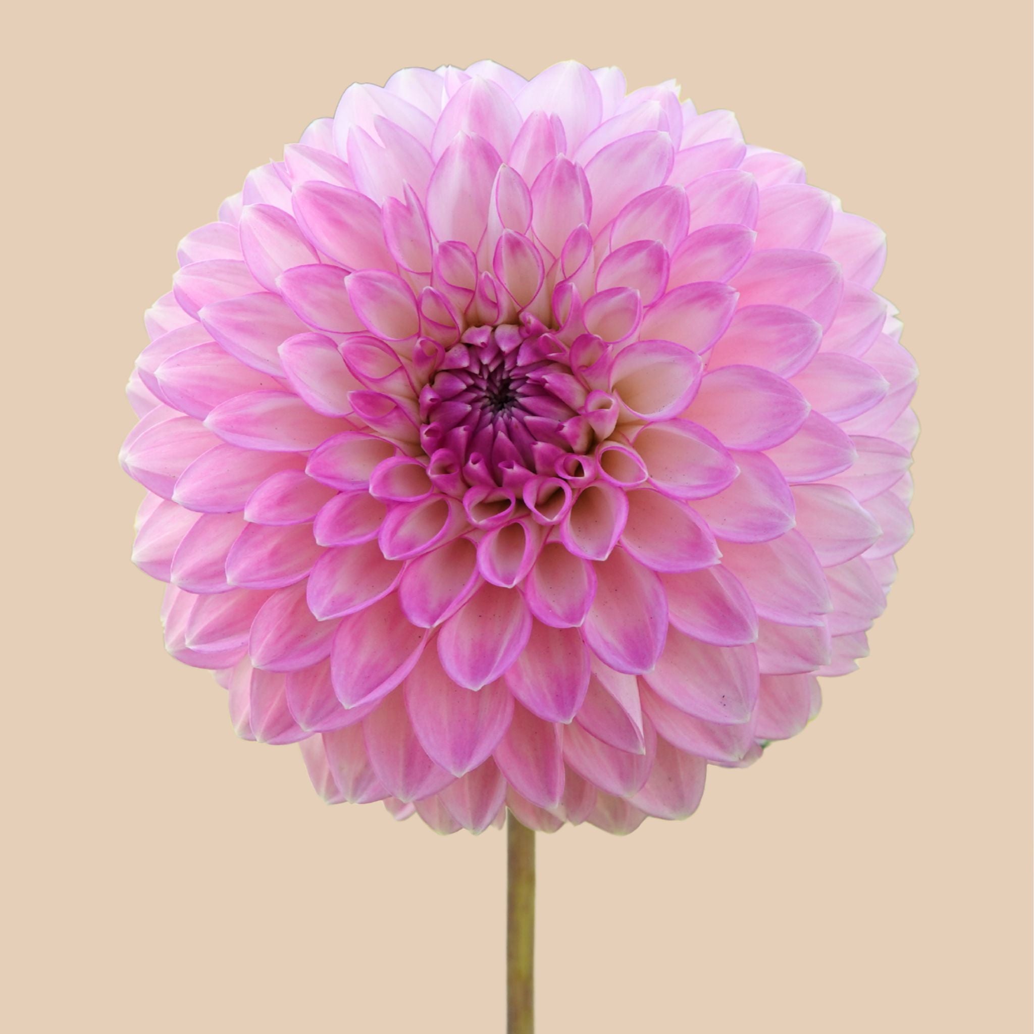 Die Dahlie ‘Sefton Silvertop’ lässt sich nicht mit einer einzigen Farbbeschreibung erfassen, und genau das lieben wir an ihr! Im Frühsommer erscheinen die ersten kompakten Blüten in zarten Creme- und Blushrosa-Tönen, im Laufe der Saison erhalten ihre Blütenblätter einen subtilen silbernen Schimmer. Mit zunehmender Reife der Blüte werden die rosa Ränder immer dunkler, was in Kombination mit dem silbernen Schimmer für einen starken Kontrast sorgt.