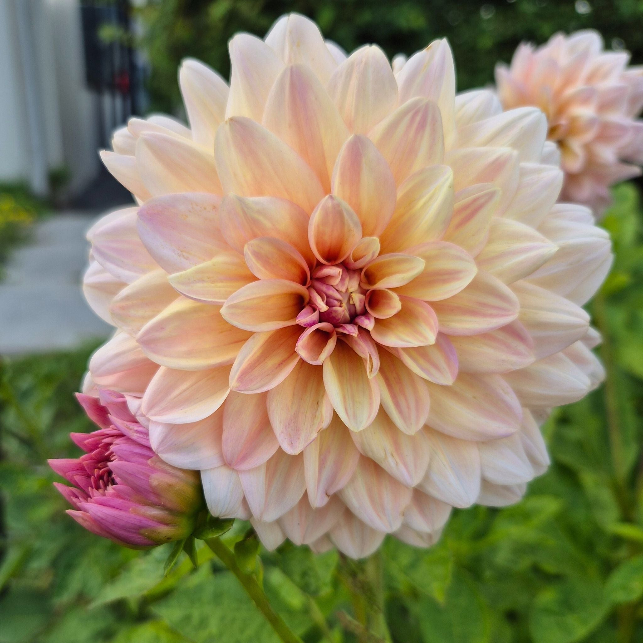 Dahlie ‘Sturm Sweet Maria’ – apricotfarbener bis zartrosa Farbverlauf