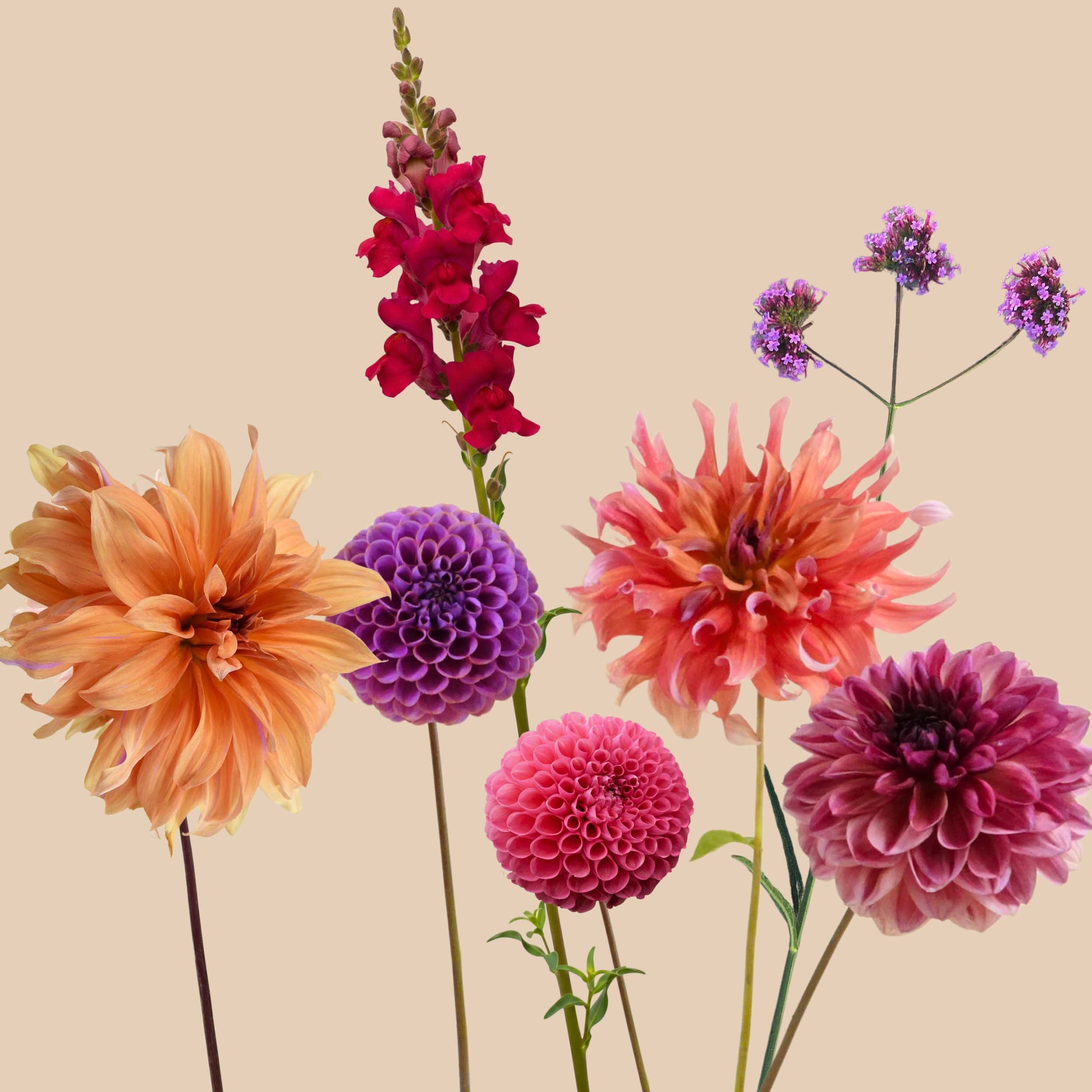 Komplette Blumenkollektion mit Dahlien und Samen