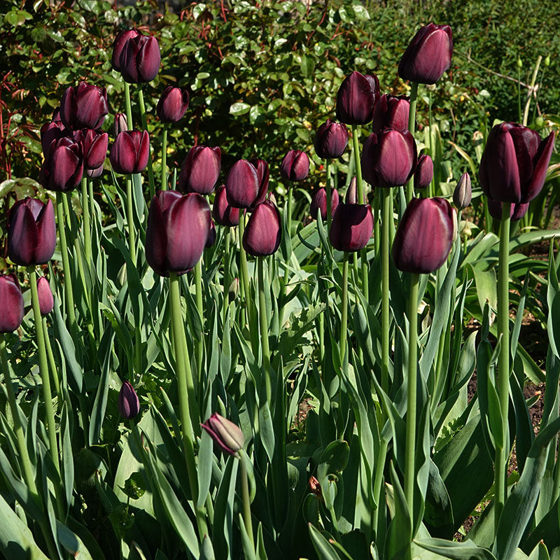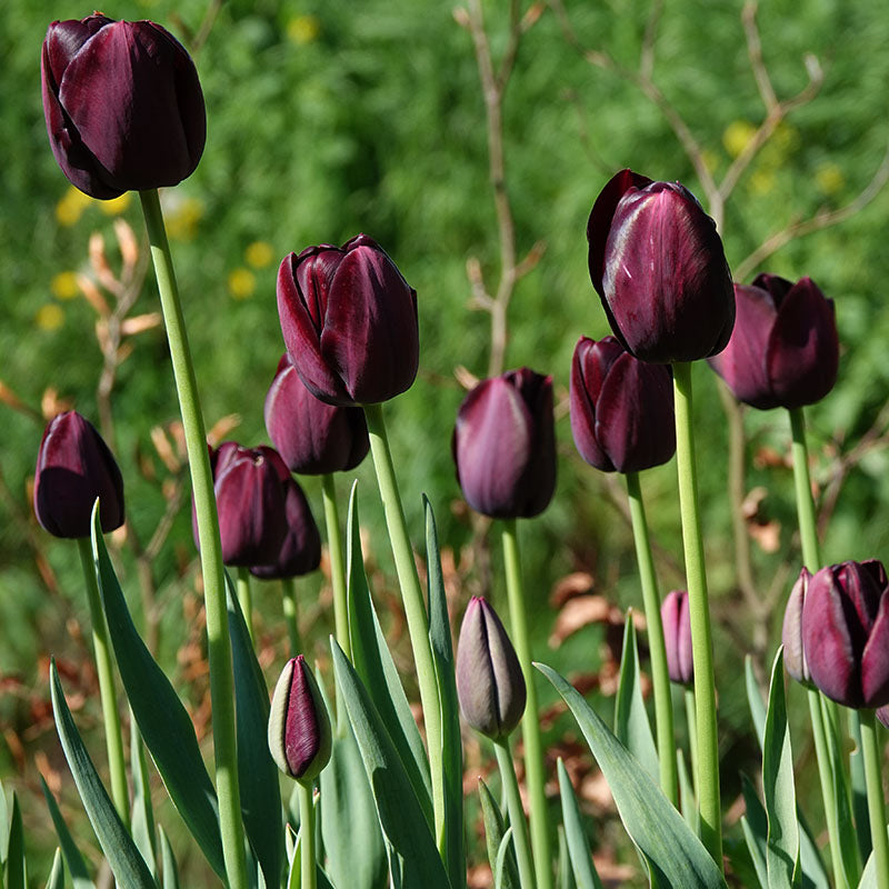 Die Tulpe „Queen of the Night“ ist eine der letzten blühenden Tulpen. Ein markanter Abschluss der Tulpensaison mit großen, dunkelvioletten Blüten, die hoch auf langen, kräftigen Stielen von über 50 cm Höhe sitzen. Ab 20 Stück: 6,50 € pro Packung.