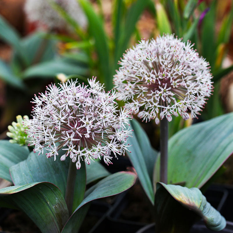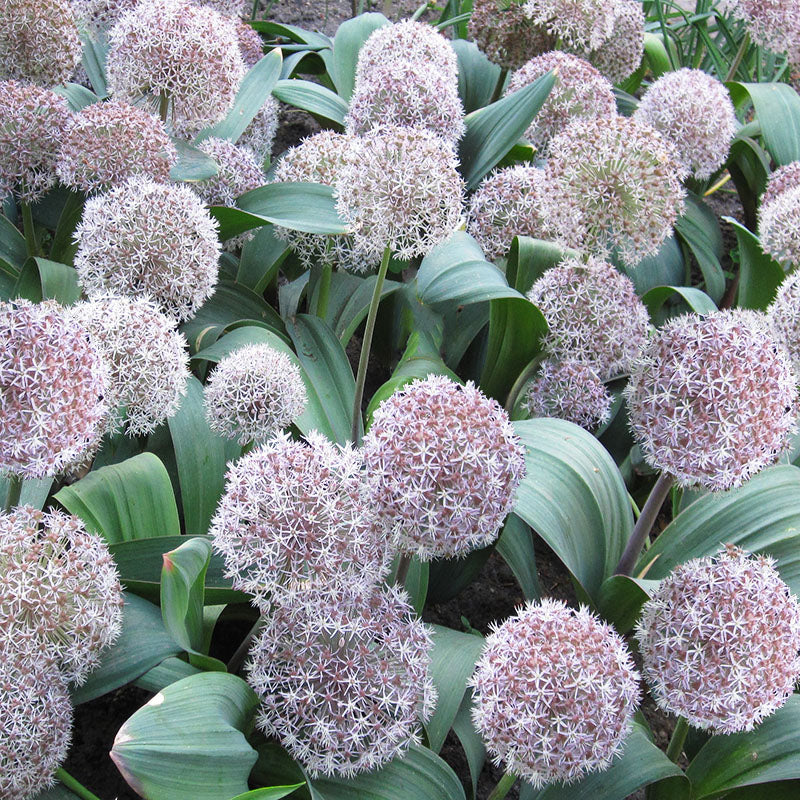 Allium Karataviense is one of the smallest ornamental onions, reaching a height of 20cm and with a flower diameter of 12cm. It's a relatively large flower consisting of hundreds of small flowers in a beautiful white-pink color, complemented by sturdy silver-green leaves. From 10 pieces: €6.00 per pack.