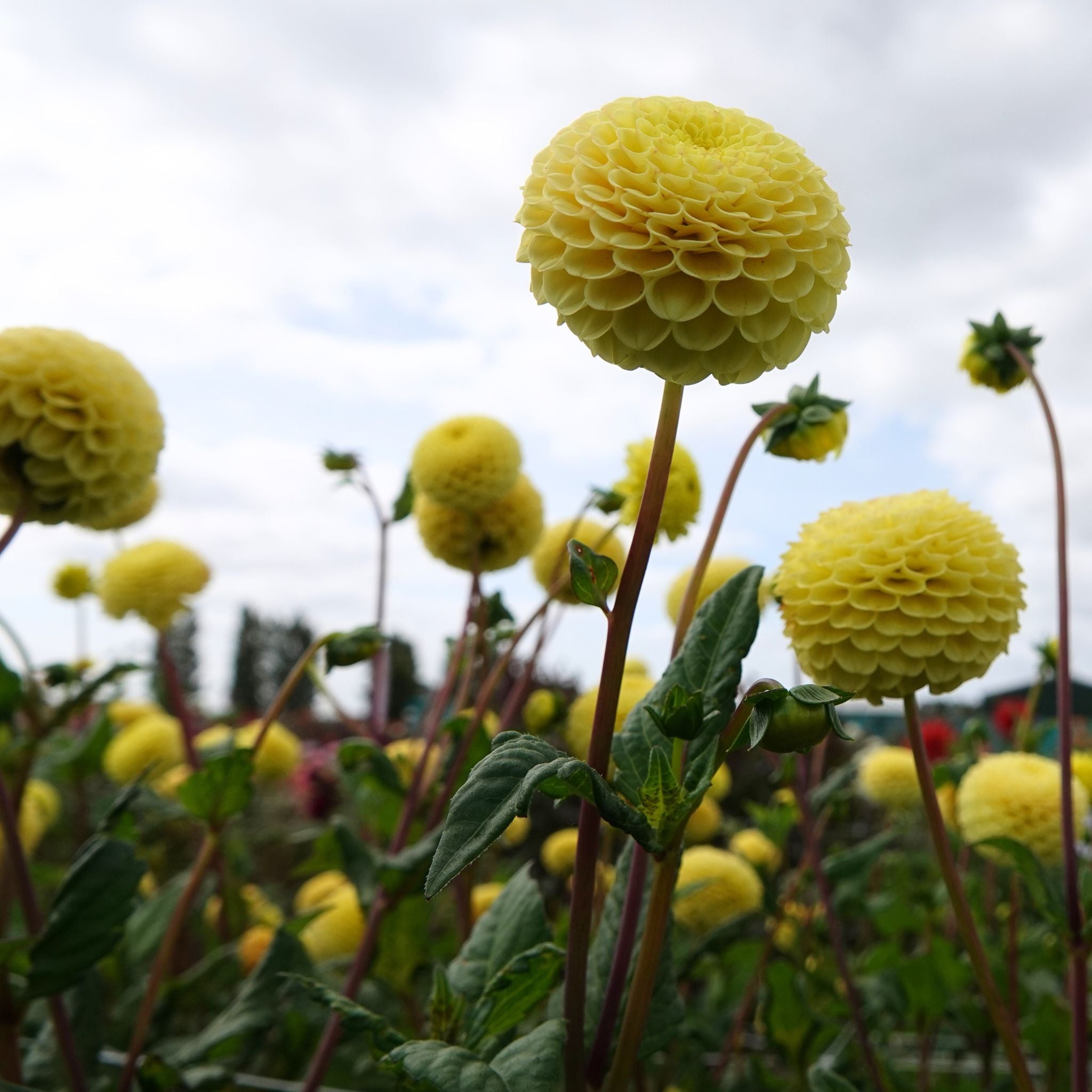 Place 'Buttercup' among soft pastel shades like cream or pale pink for a harmonious look. I love the combination with the large flowers of the Breakout dahlia .