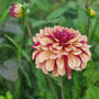 Dahlia 'Crème de Cognac' is one of those flowers you'll want to look at again and again. Its petals display a blend of butterscotch, copper, peach, and a hint of cherry red. The contrast between the amber upper part and the deep red underside makes each flower unique. The result: a warm glow that will brighten your garden well into late summer.