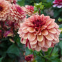 Dahlia 'Crème de Cognac' is a vigorous bloomer that continues to produce flowers all summer long, right up to the first frost. The flowers are medium-sized, about 15 cm in diameter, and stand sturdy on stems about 80 cm tall. Even after a summer shower or strong wind, the flowers remain upright. The plant is compact and productive: you can count on a generous bouquet of flowers that will fill your border and also look beautiful in a bouquet.