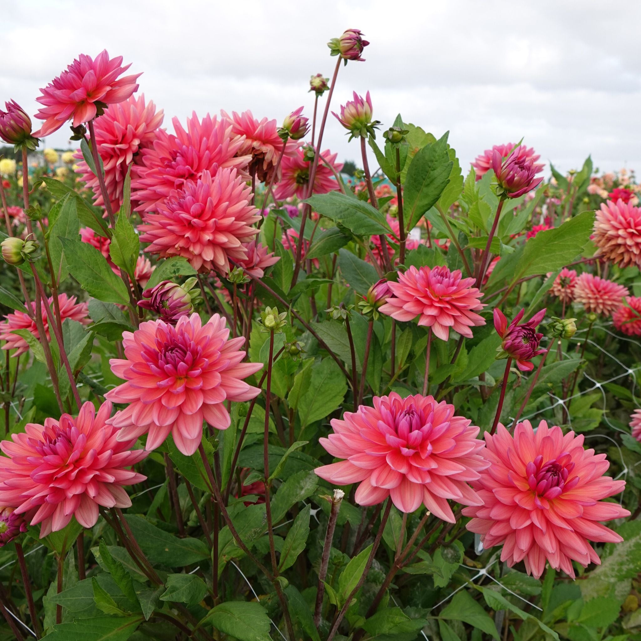 Dahlia 'Dutch Pearl' is a prolific bloomer with medium-sized flowers of about 12 cm. They grow on long, sturdy stems, perfect for use as a cut flower. The more often you pick them, the more new buds they form. The plant itself has fresh, dark green foliage, and the flowers are beautifully upward-facing, protruding above the foliage and making them a lovely addition to a bouquet.