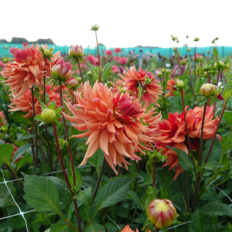 Dahlia 'Erpeler Ley' combines beautifully with other warm shades like copper, salmon, or raspberry. Its combination with Dark Spirit is particularly lovely.