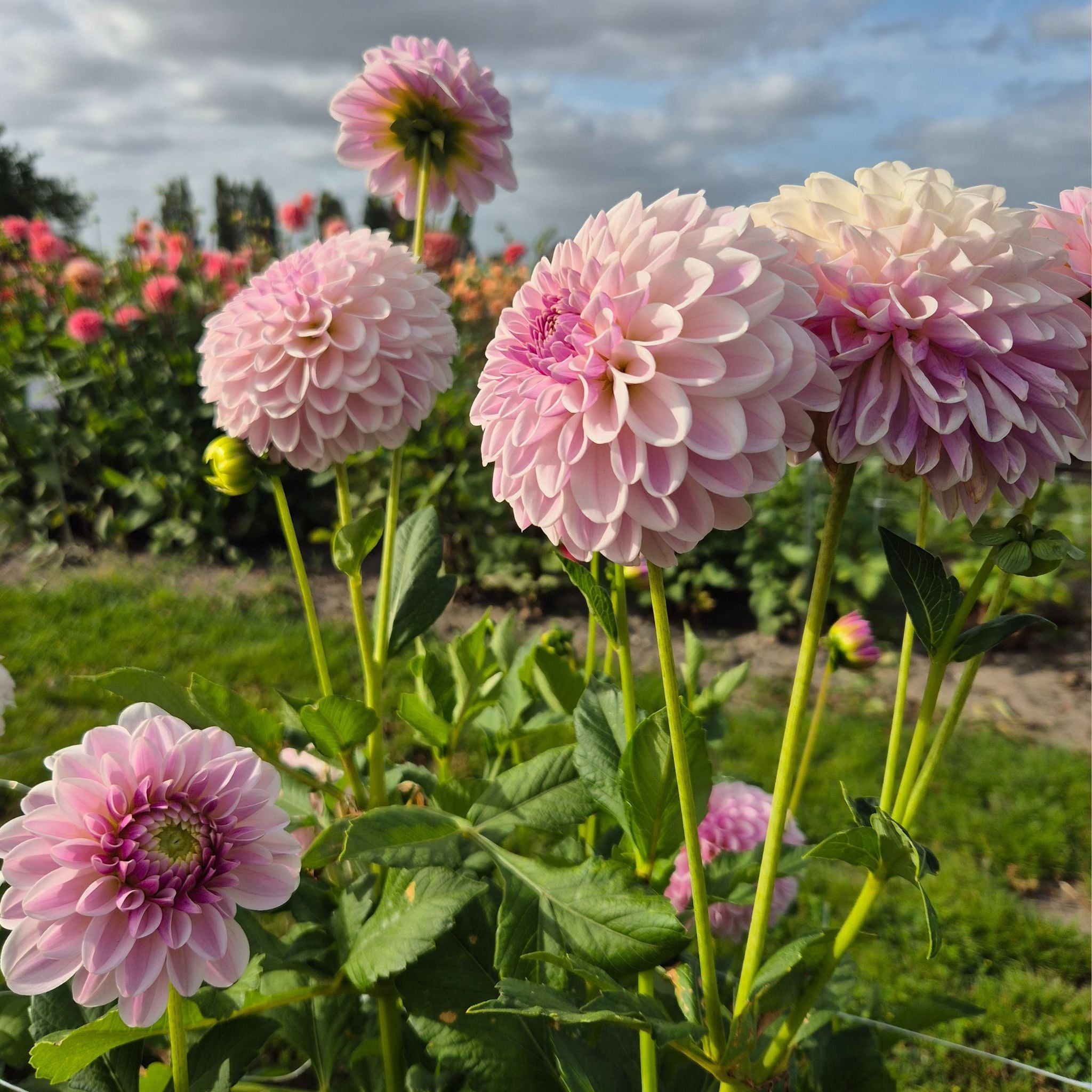 Dahlia 'Pink Silk' blooms from summer until the first frost, producing medium-sized flowers of about 12 cm. The plants grow to 100 cm tall and have sturdy stems, ensuring the flowers remain upright even after rain or wind. If you regularly cut flowers for vases, the plant will continually produce new buds.