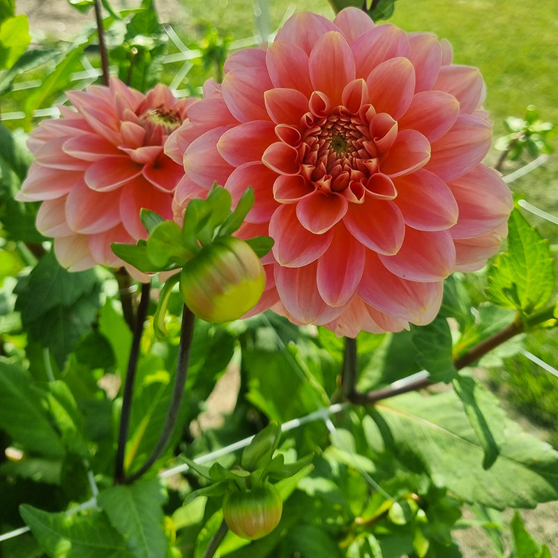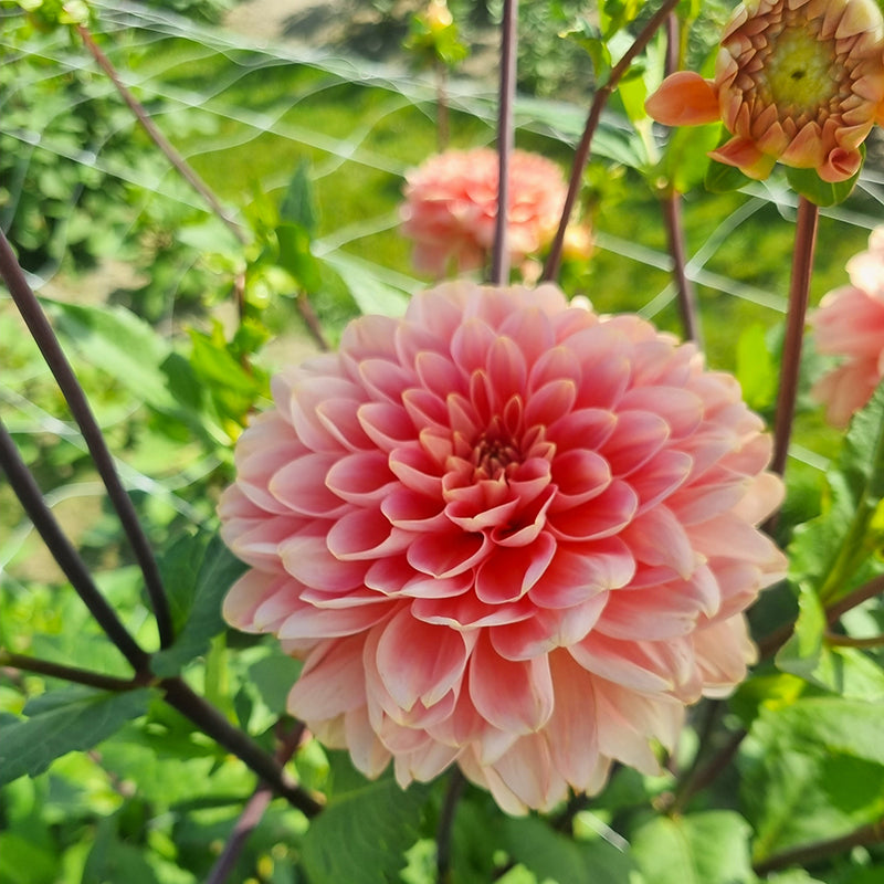 I added Dahlia 'Rosario' to my dahlia collection for its beautiful soft hues, but especially for its unique flower shape. The petals are slightly pointed and point upwards, giving the flower a resemblance to a lovely, double peony. The soft salmon pink color has a subtle apricot glow as it opens. The flowers are 12cm in diameter and are held aloft on sturdy, long stems.