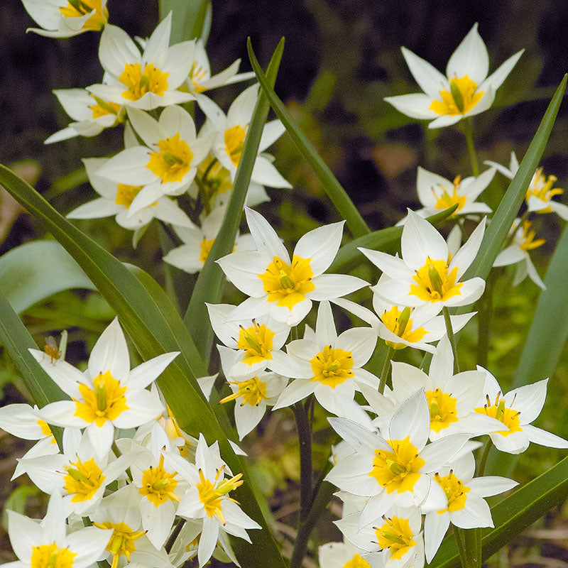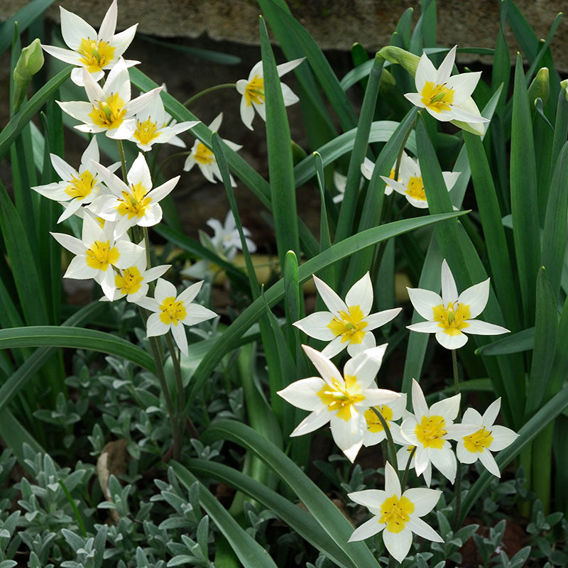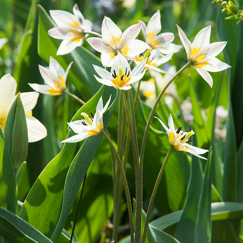 Tulip Turkestanica has tiny star-shaped flowers that radiate in all directions. Each flower stem bears approximately 6 to 8 star-shaped flowers in a bright yellow color with a dark yellow center. From 30 pieces: €6.50 per pack.