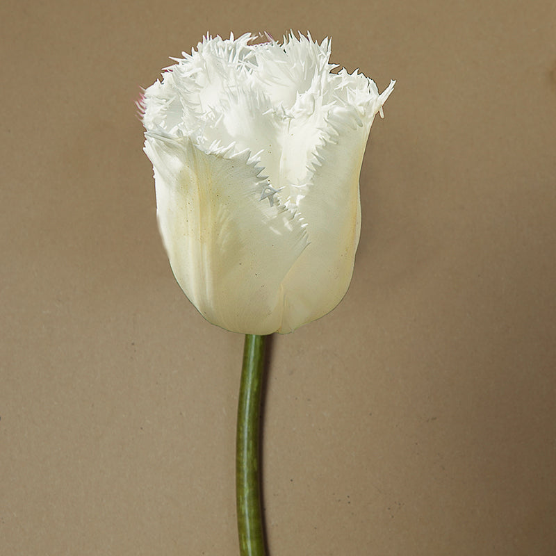 Honey Moon tulip, a bright white, fringed tulip held tall on sturdy stems of about 50cm. The party really starts when the snow-white flowers are in bud; you can clearly see the fringed edges. From 20 pieces: €8.00 per pack