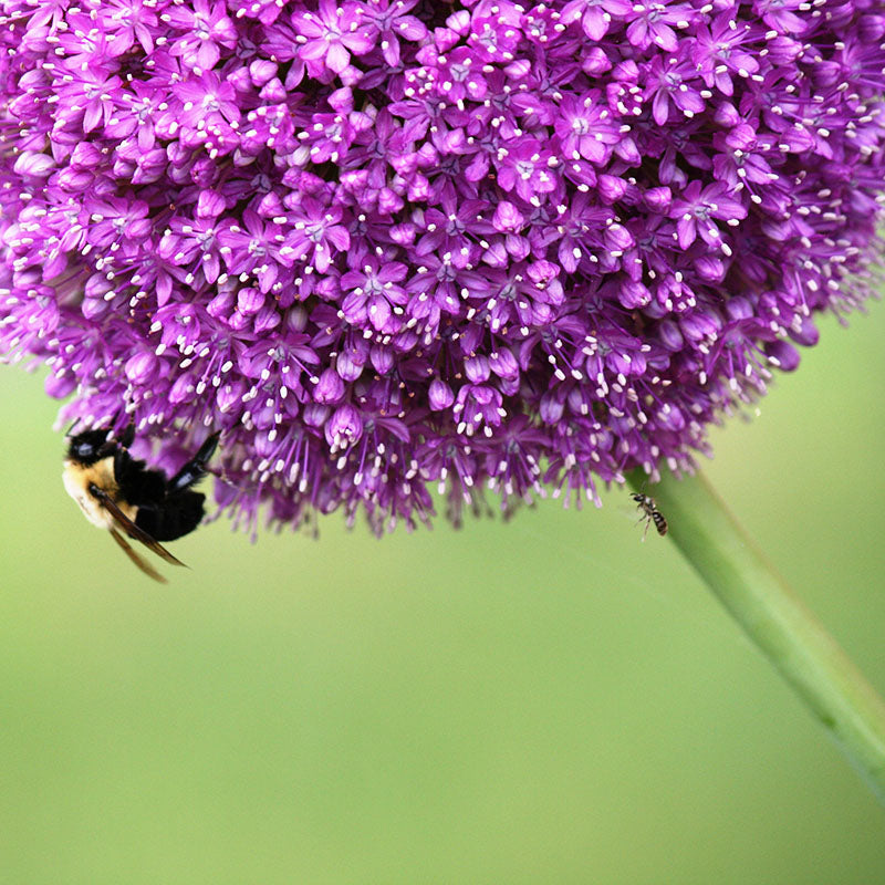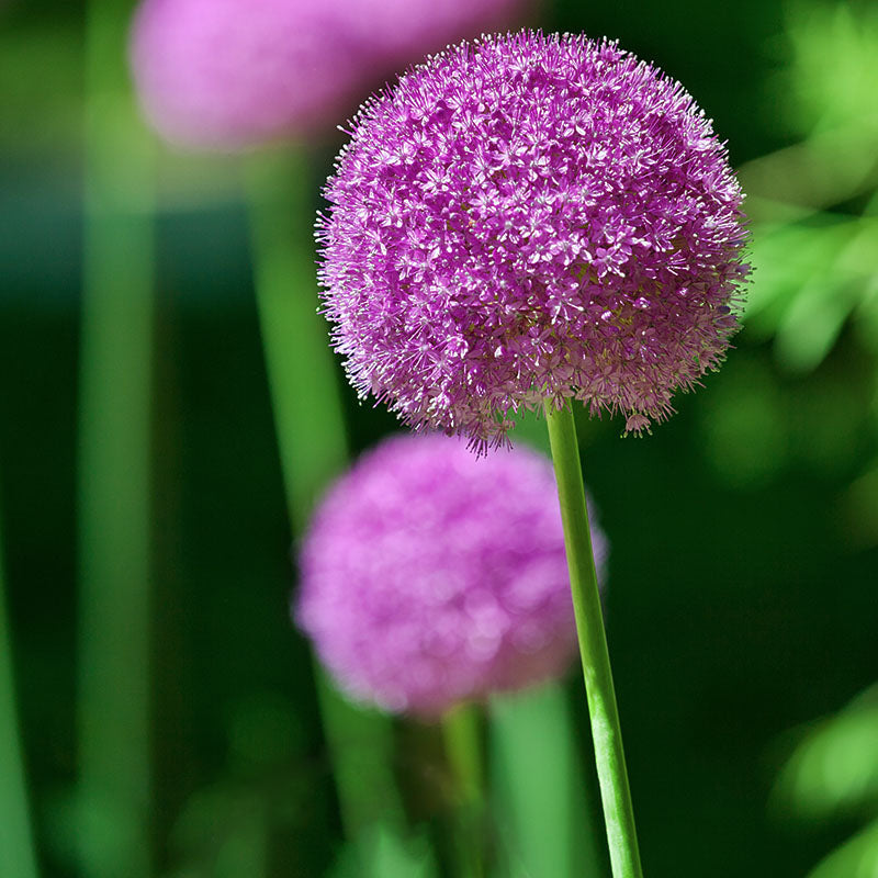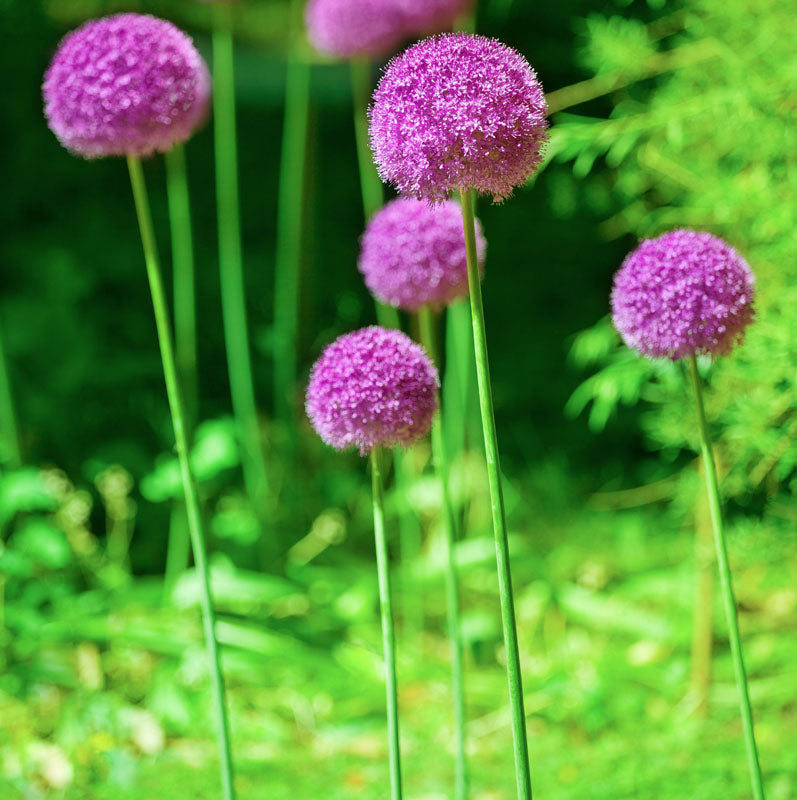 Allium Giganteum behoort zeker thuis in het rijtje reuzenuien. Purperroze bloemen met een doorsnede van zo’n 18cm op stelen die een hoogte van 1,5m kunnen bereiken.