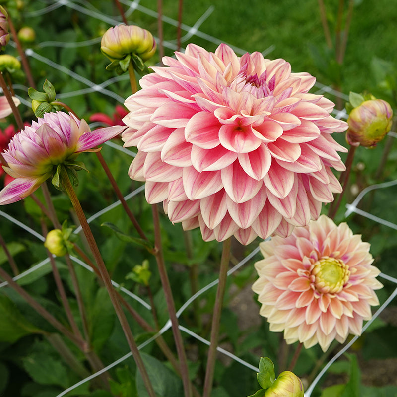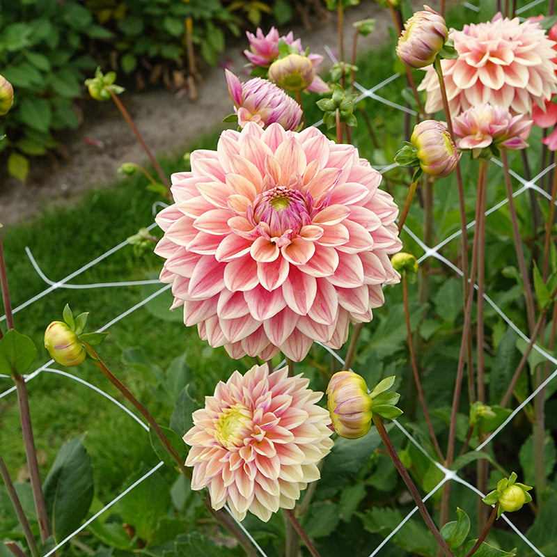 Ze combineert mooi met warme roze tinten zoals Dahlia La Belle Epoque of frisse frambooskleurige variëteiten zoals Dahlia Jowey Frambo.