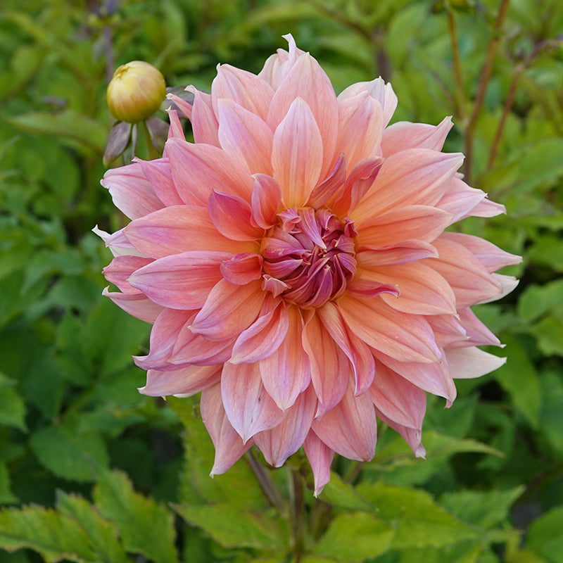 Dahlia ‘Fairway Spur’ valt direct op door haar formaat en kleur. De bloemen kunnen wel 25 cm groot worden en bestaan uit een mix van brons, zalmroze en perzik. De bloemblaadjes hebben een zachte, volle vorm en lijken bijna te gloeien in het zonlicht. Een dahlia die net zoveel indruk maakt in de tuin als in de vaas en een leuke basis vormt om met andere dahlia’s te combineren.