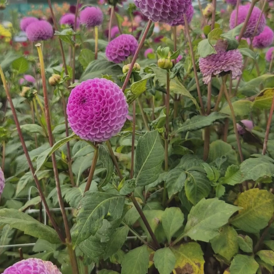 Dahlia ‘Frank Holmes’ is klein van formaat, maar groots in uitstraling. Haar bloemen zijn perfect rond, slechts zo’n 5 cm groot, en hebben een zachte lavendel roze kleur. Het resultaat is een speelse pompon die in de tuin danst op lange, slanke stelen. Een bloem die door de leuke kleinere bloemvorm juist gaat opvallen tussen alle grotere dahliabloemen en ook lang houdbaar is in de vaas.