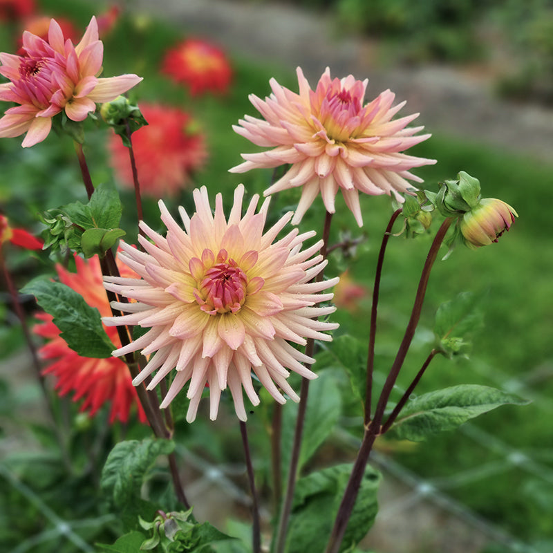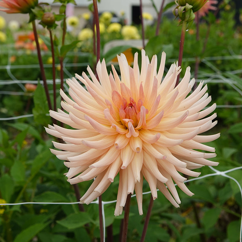 Omdat ze zachtheid en speelsheid combineert in één bloem. De cactusvormige bloemblaadjes geven een luchtig en speels effect, terwijl de warme zalm en abrikoos tinten fijn combineren met andere dahlia’s.