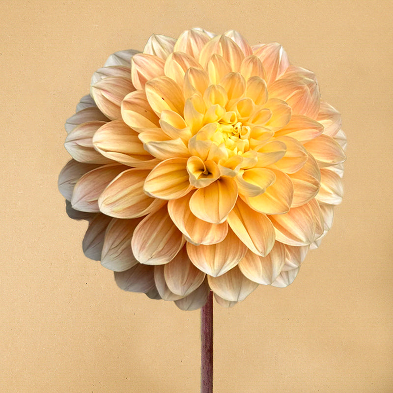 Dahlia ‘Honey Dew’– zacht perzikgeel en perfect gevormd