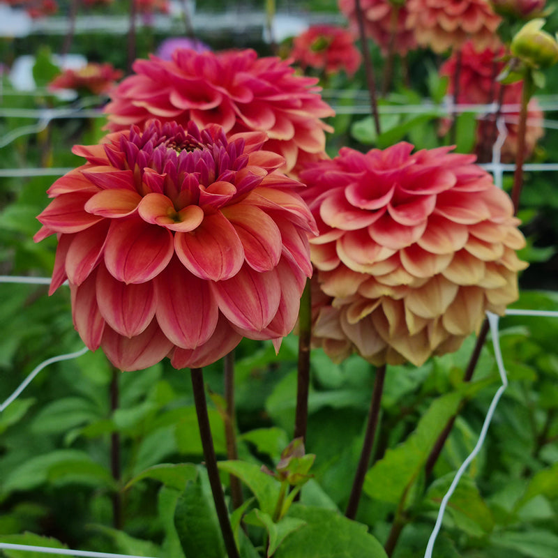 Zelf vind ik de combinatie van ‘Iced Tea’ met Dahlia Babylon Bronze mooi, maar ze past ook goed naast lichtere soorten zoals Dahlia Honey Dew voor een zachter geheel.