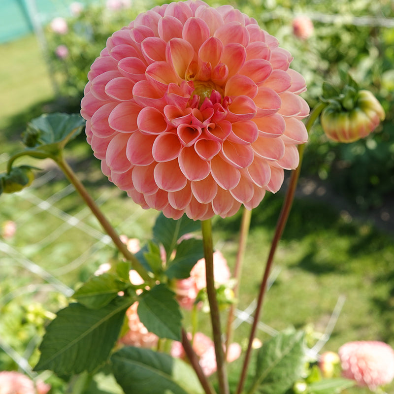 Haar zachte perzik roze tinten passen in bijna elk kleurenpalet en zijn een leuke basis om eindeloos met andere dahliasoorten te combineren. Ze bloeit in overvloed en heeft sterke lange stelen waardoor ze ook in de vaas mooi staat.