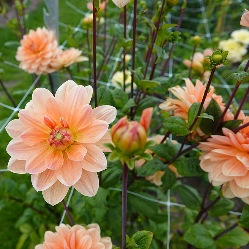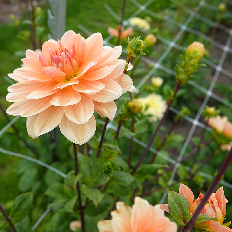 Dahlia ‘Mister Frans’ is een waterlelie-dahlia met bloemen van 12cm doorsnee. Ze heeft verschillende kleurtinten van perzik, abrikoos en een vleugje goud. De naar boven gerichte bloemvorm maakt haar net even anders dan de meeste dahlia’s.