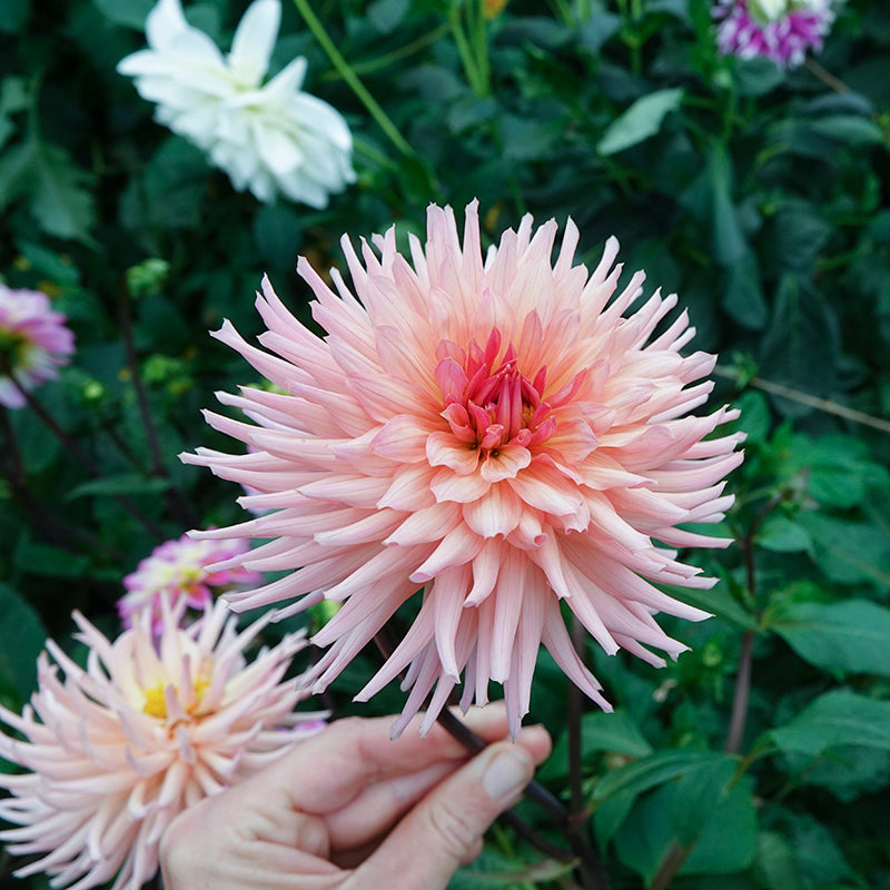 Dahlia ‘Preference’ is elke zomer weer in mijn tuin terug te vinden. Een oude favoriet, door het mooie kleurverloop van zachtroze, geel en perzik. De bloemen hebben een speelse cactusvorm en zijn heel leuk te combineren met andere dahliasoorten. Het is een productieve soort waar je de hele zomer armen vol bloemen van kan plukken.