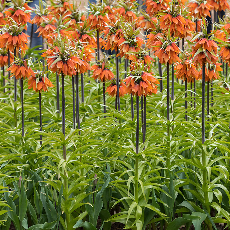 Fritillaria Imperiallis Aurora wordt ook wel de oranje keizerskroon genoemd. Deze keizerskroon geeft grote hangende klokvormige bloemen in een oranje-rode kleur met een contrasterende groene steel. Een feest voor het oog maar ook voor de bestuivers. Vanaf 2 stuks: € 5,50 per verpakking