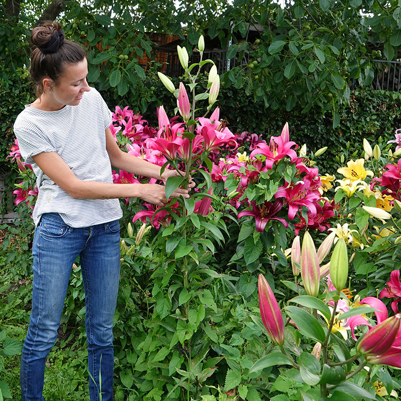 Boomlelies bereiken een flinke hoogte en zijn daardoor iets gevoeliger weersomstandigheden zoals wind en regen. The Blooming Company adviseert klanten minstens 3 stuks dicht bij elkaar te planten, met een plant afstand van 10 tot 15cm. Door de leliebollen in een groep te planten zullen de bloemen op elkaar steunen en staan deze veel stabieler. Daarnaast ziet een groep lelies er natuurlijk mooier uit dan een enkele steel. Bij een zeer windige standplaats adviseren we gebruik te maken van een bloemensteun om zo te voorkomen dat de stelen omknikken.
