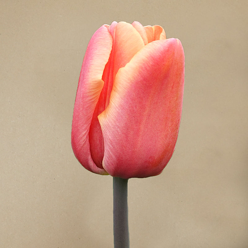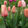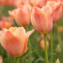 Tulp Apricot Foxx een tweekleurige tulp in een zachte tint van abrikoos oranje met een zalmkleurige tot zacht gele buitenrand. Vanaf 20 stuks: € 6,50 per verpakking