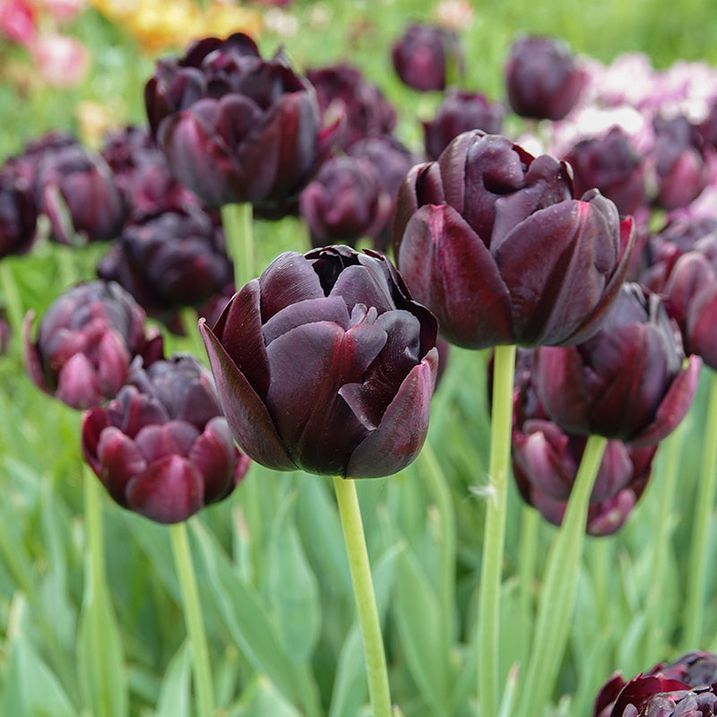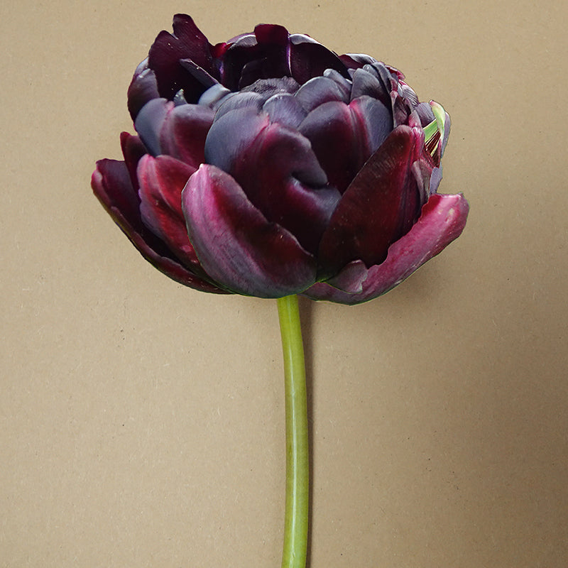 Tulp Black Hero is zeker een zwarte held te noemen. De fluweelzachte dubbele bloemen lijken op een zwarte pioenroos, en draagt met recht de bijnaam van donkerste tulp. De donkere, kastanjebruin-paarse bloemen zijn erg mooi in combinatie met andere kleuren. Vanaf 16 stuks: € 8,00 per verpakking