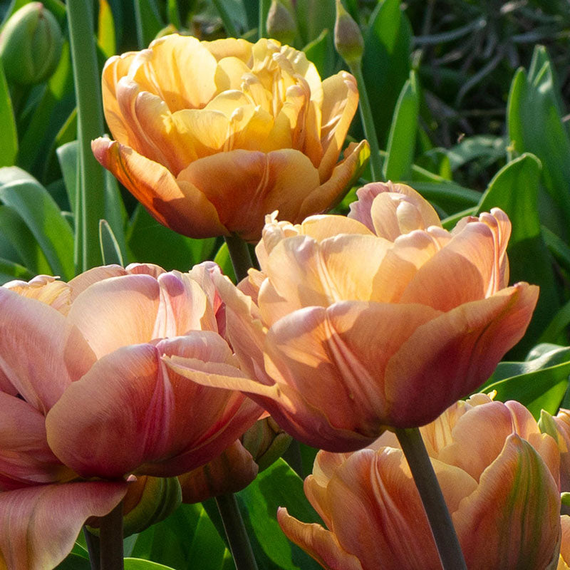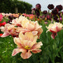 Tulp La Belle Epoque een grote gevulde bloem in een kleurencombinatie van abrikoos-roze gemixt met champagne bruin. De zachte romantische kleur is een echte toevoeging aan iedere voorjaarstuin.