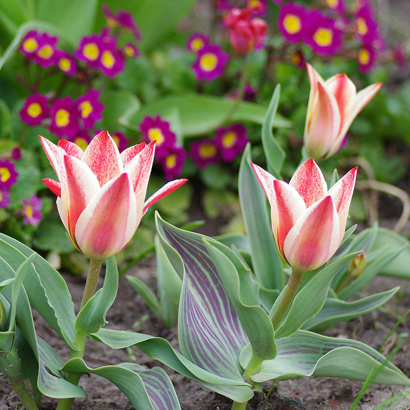 Tulp Quebec is een lage meerbloemige tulp en creëert een boeket aan bloemen per bloembol. Één bloembol produceert namelijk zo’n 3 tot 5 bloemen, de bloemblaadjes zijn zacht geel van kleur en zijn versierd met een rood roze tekening. Vanaf 20 stuks: € 6,50 per verpakking