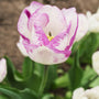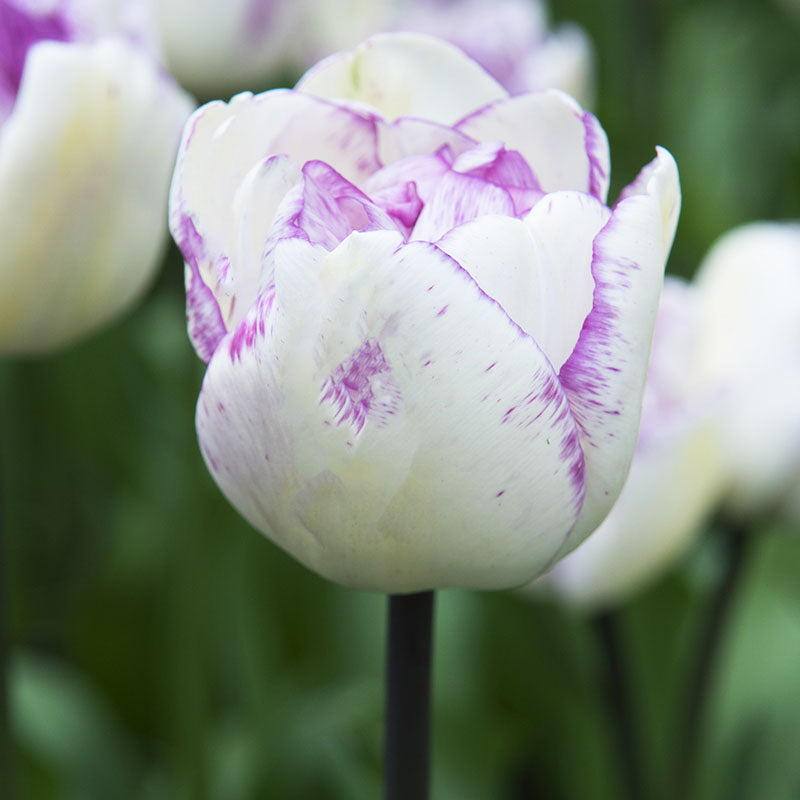 Tulp Shirley veranderd tijdens de bloei van kleur. Bij aanvang zijn de bloemblaadjes ivoor wit met een subtiele lavendel paarse omranding, naarmate de bloeitijd vordert veranderen de bloemblaadjes naar een zachte lila kleur. Vanaf 20 stuks: € 6,00 per verpakking